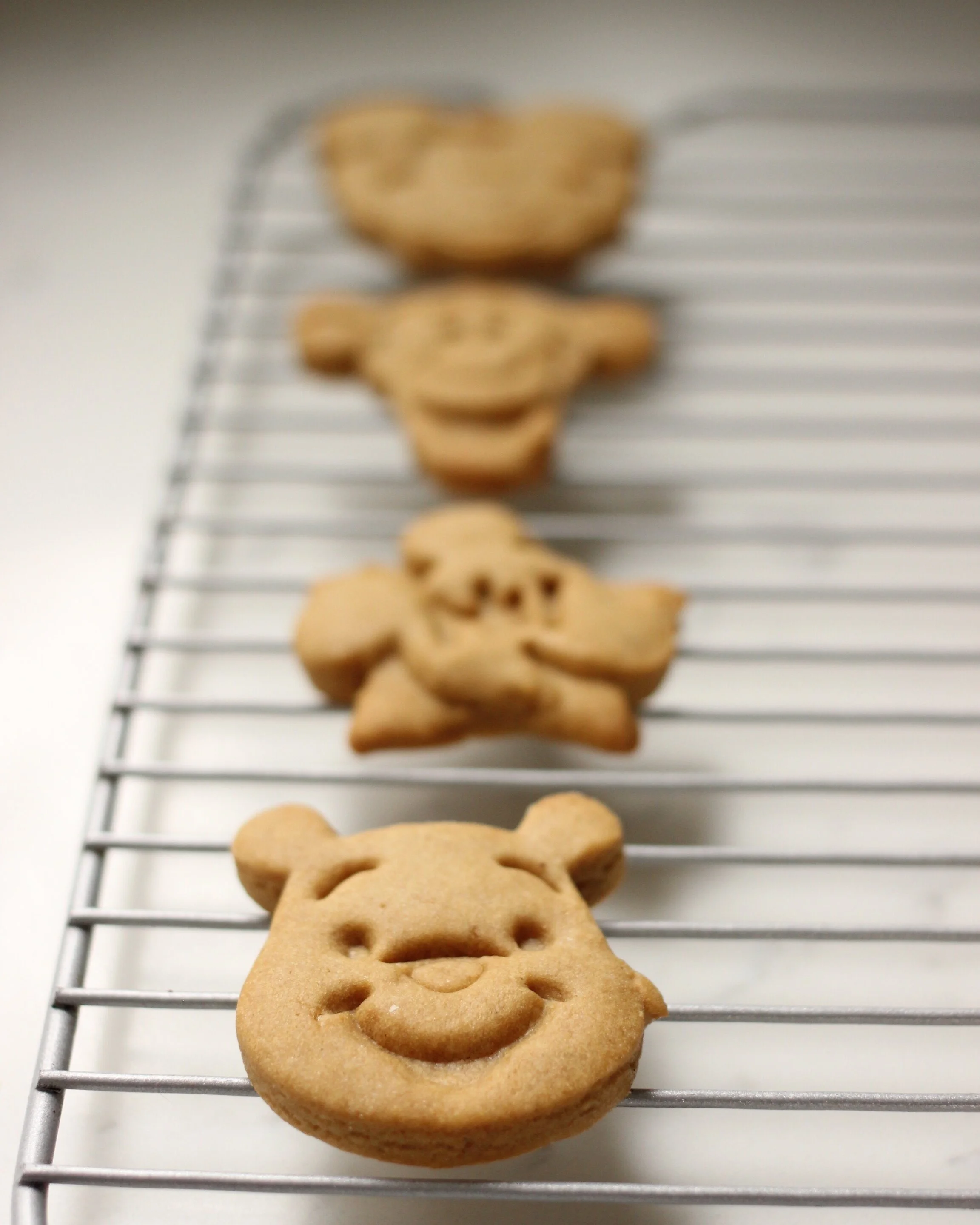 Cream butter and sugar together until thoroughly mixed, about 2 minutes. Beat in egg and vanilla for an additional minute. Add in dry ingredients being careful not to over mix. Chill dough for at least 1/2 an hour. Preheat oven to 350 degrees before rolling out your dough to about 1/4 inch thickness and cutting out your shapes. Bake for 6 minutes. You want them to still be soft when you take them out. They are slightly crispy on the outside but really soft on the inside. Keep in mind, my cookie cutters were pretty small so you’ll have to see how many cookies you get out of your recipe and adjust the carbs accordingly.